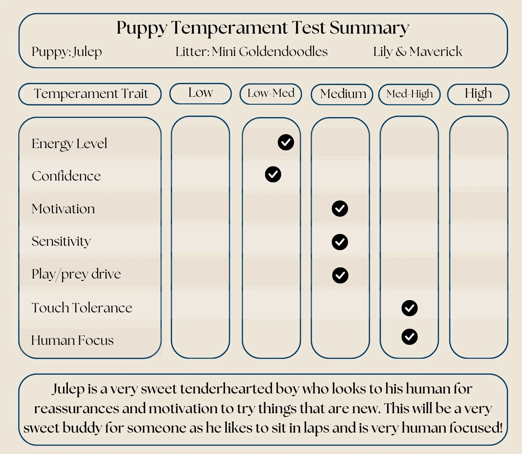 Maverick is owned by Kaelee Elmer and is a 20lb, 22% golden, fully health tested, double furnished with a wavy/straight coat. Maverick is smart, kind, playful, great with kids, and loves people.