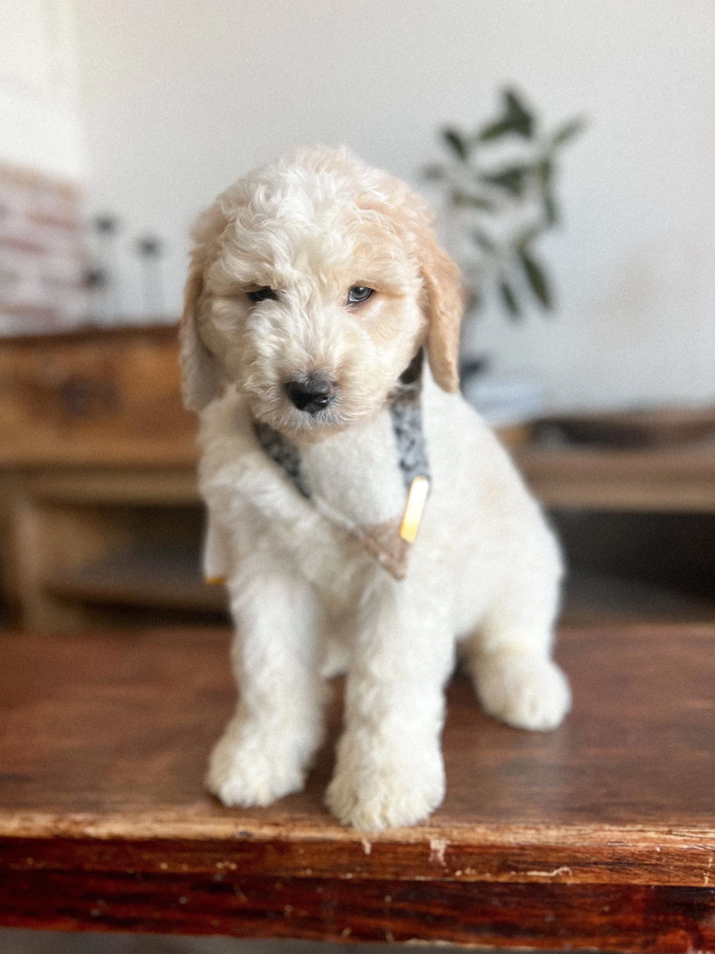 Golden with Brown Nose and Green Eyes that will turn Amber, Wavy Coat