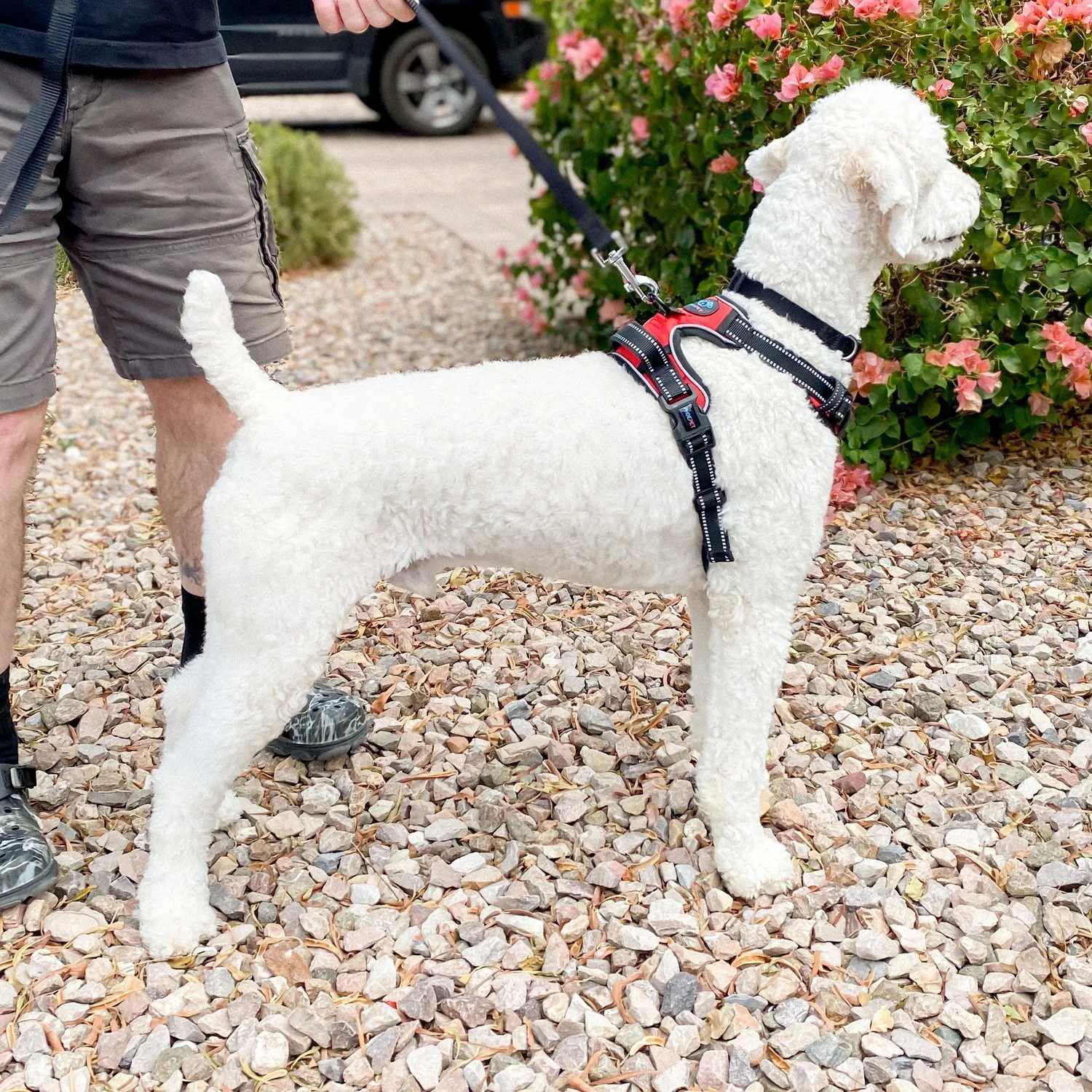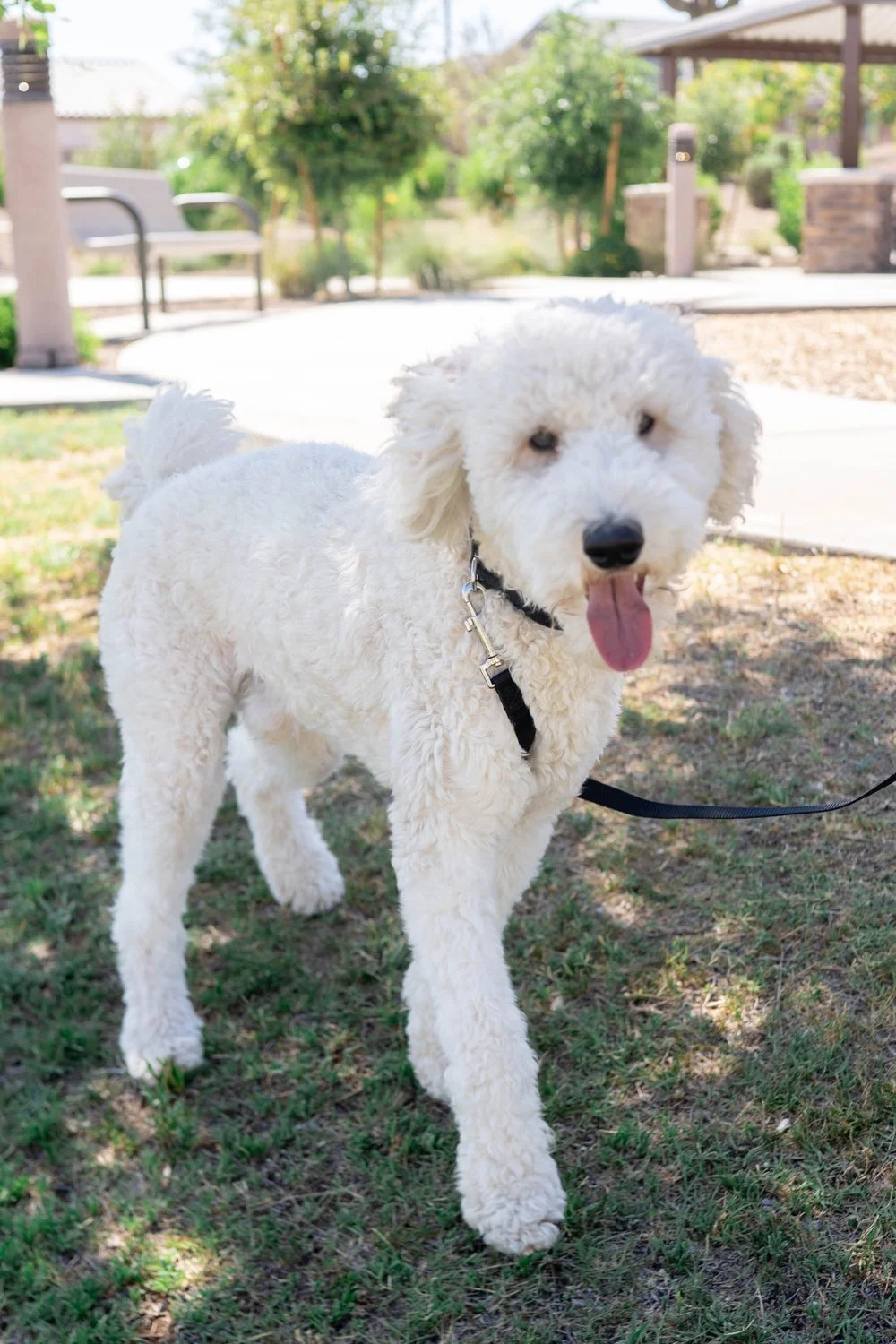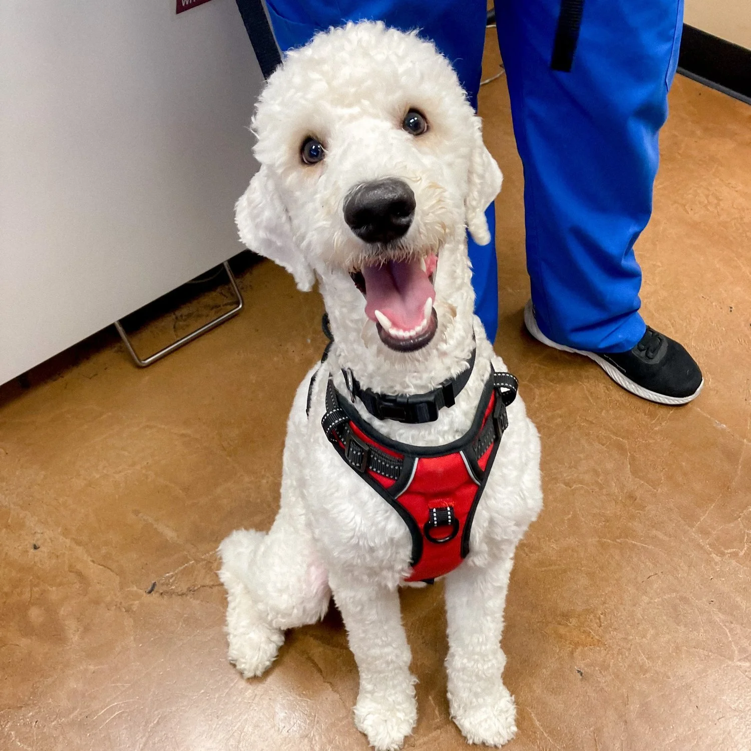 Oslo is an 36 pound AKC Moyen Poodle that is so so sweet and has been human focused since day one. He gives the best “puppy eyes” (gorgeous almond shape) and has the best head tilts when he hears noises. He has medium energy and is very smart. Has an average interest in toys (no big prey drive) and is good around kids and other dogs.
